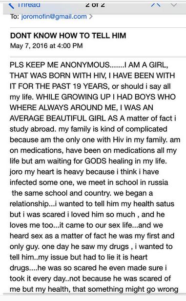 I feel for them. A Nigerian student infect her boyfriend with HIV after they had s*x couple of times back. Joro Olumofin shared the story on his Instagram page. Follow us on Twitter! Like us on Facebook!